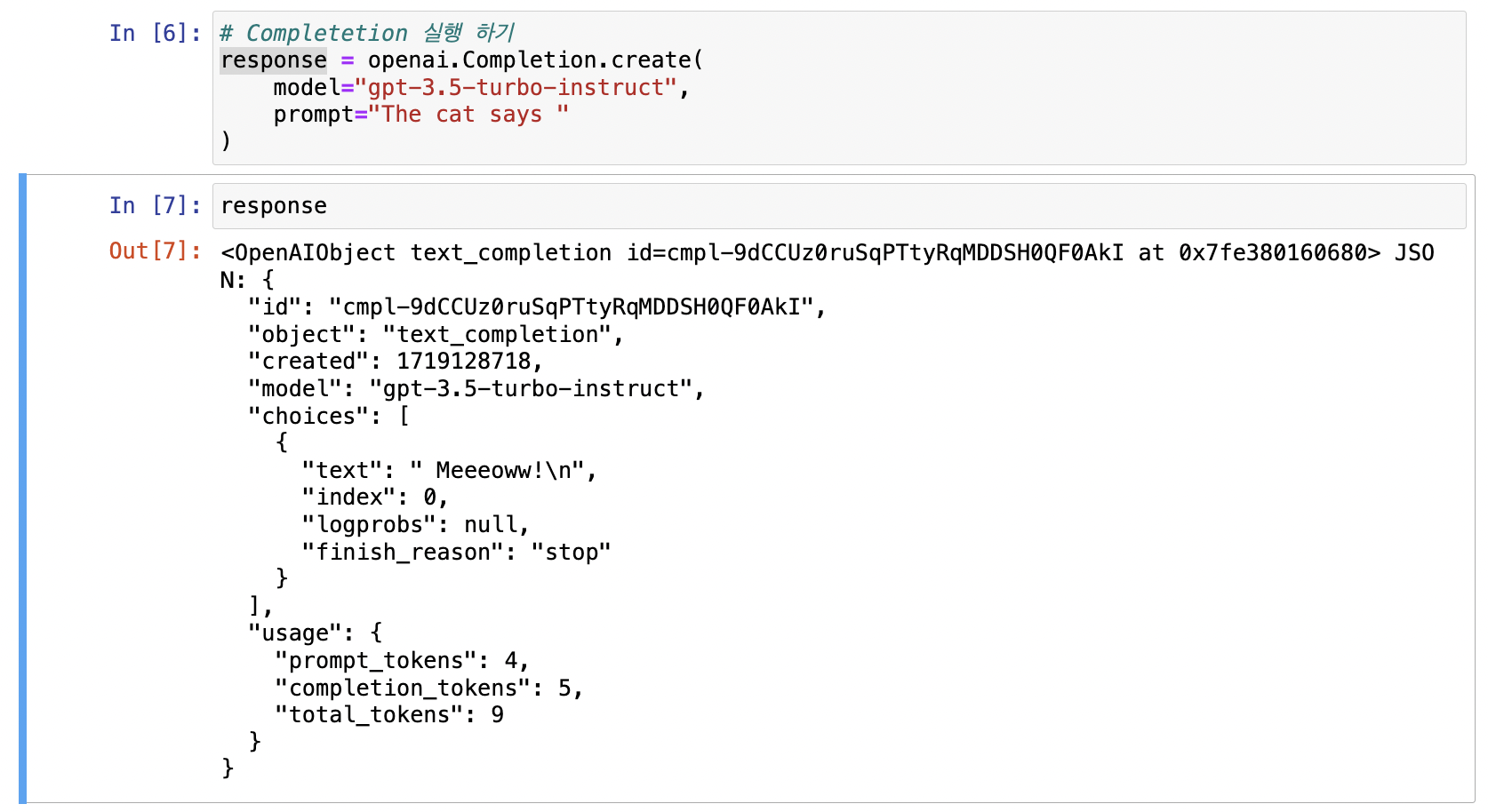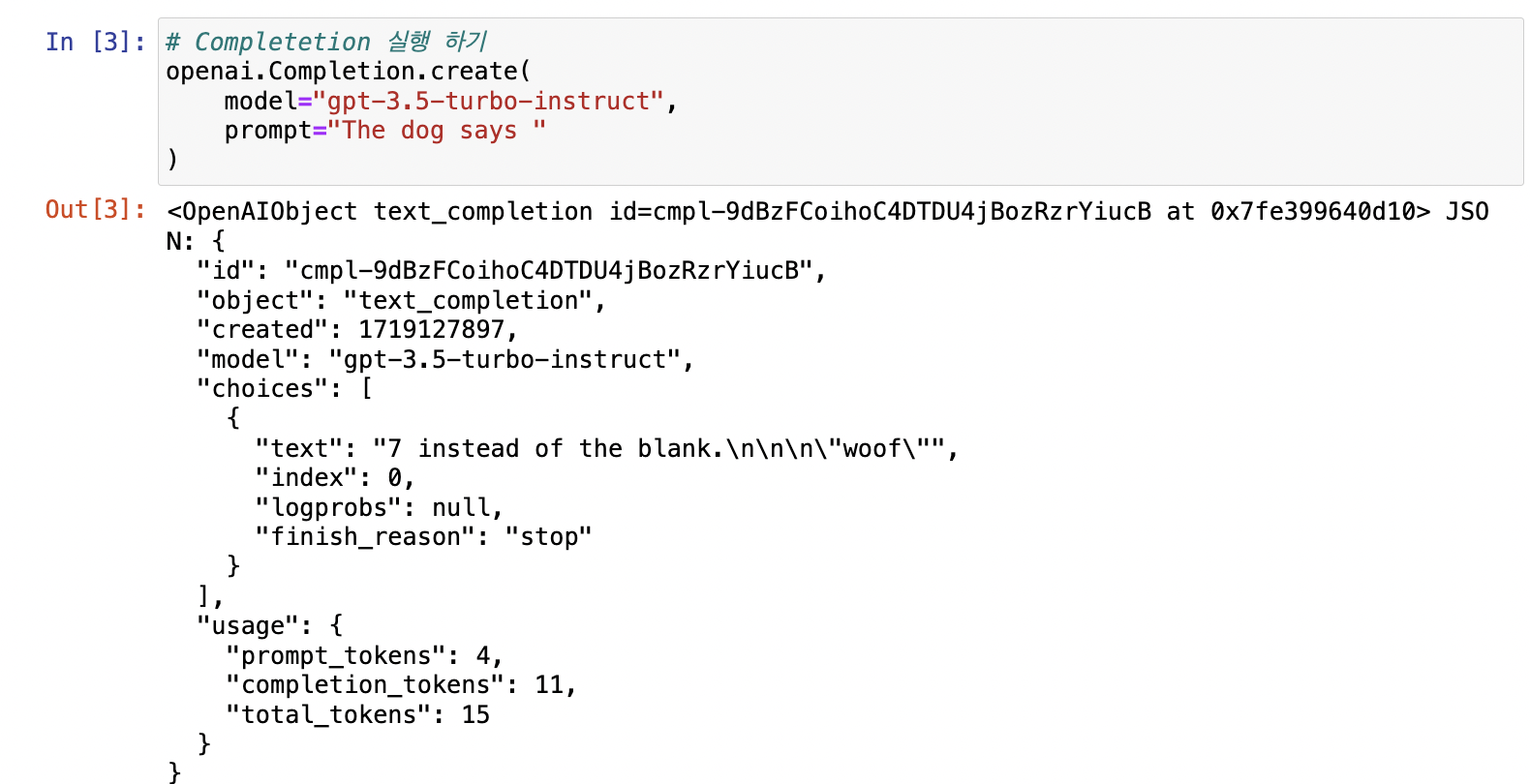 - finish_reason : stop인 경우 -> 적절하게 문장이 끝났고 더 할 말이 없다.